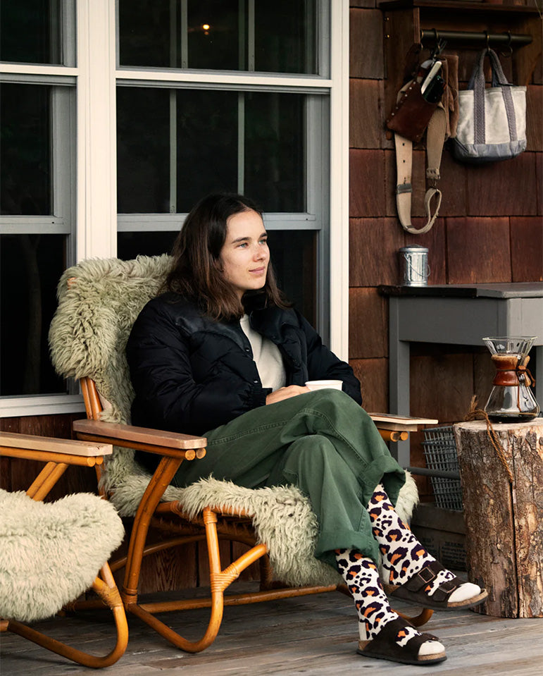 Features a catchy large leopard print, and an inside made of pile knit for softness and cushioning. The front part of these socks features a footprint pattern, giving the leopard print a ROTO style twist.