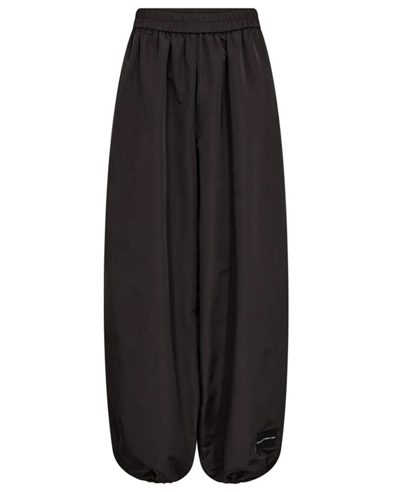 High-waisted, loose-fitting trousers with elasticated ankles and a voluminous cut. The fabric is soft and flowy, you won't want to take these off.