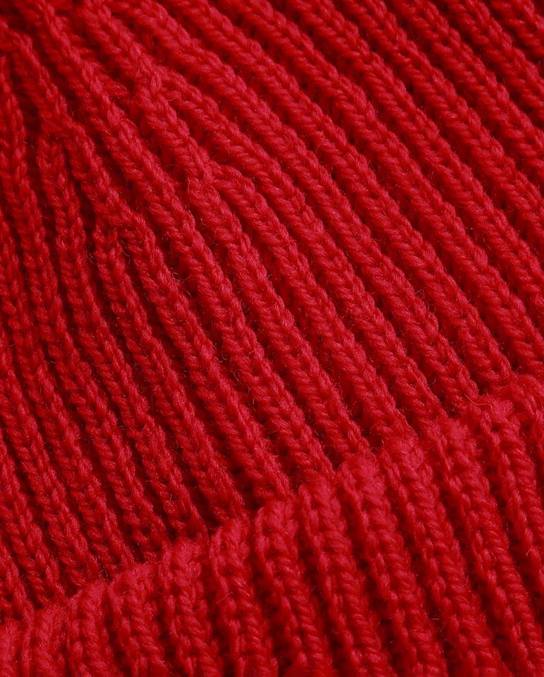 A seven-gage ribbed watch cap which sits perfectly on the head, woven from pure Merino Wool yarn.