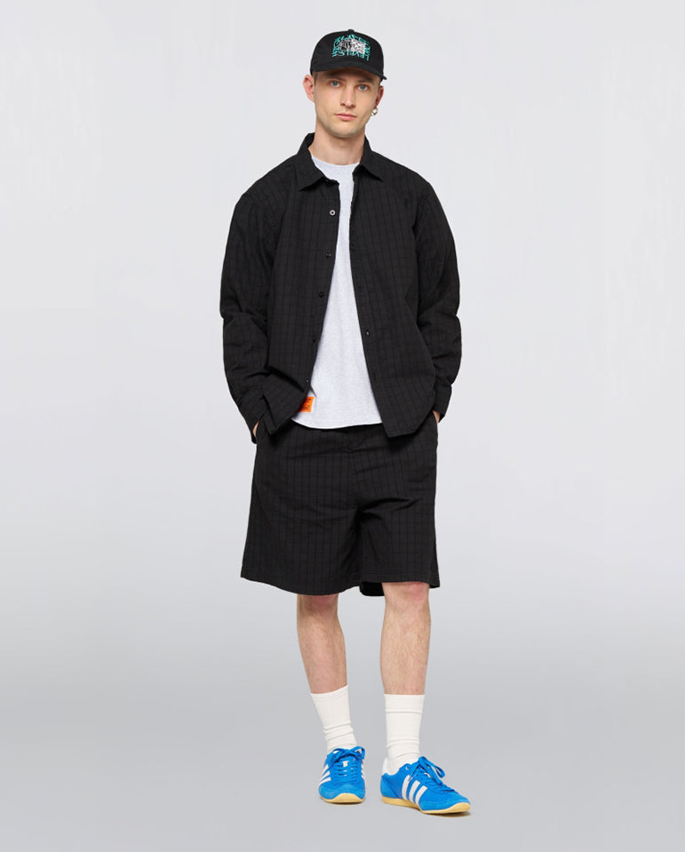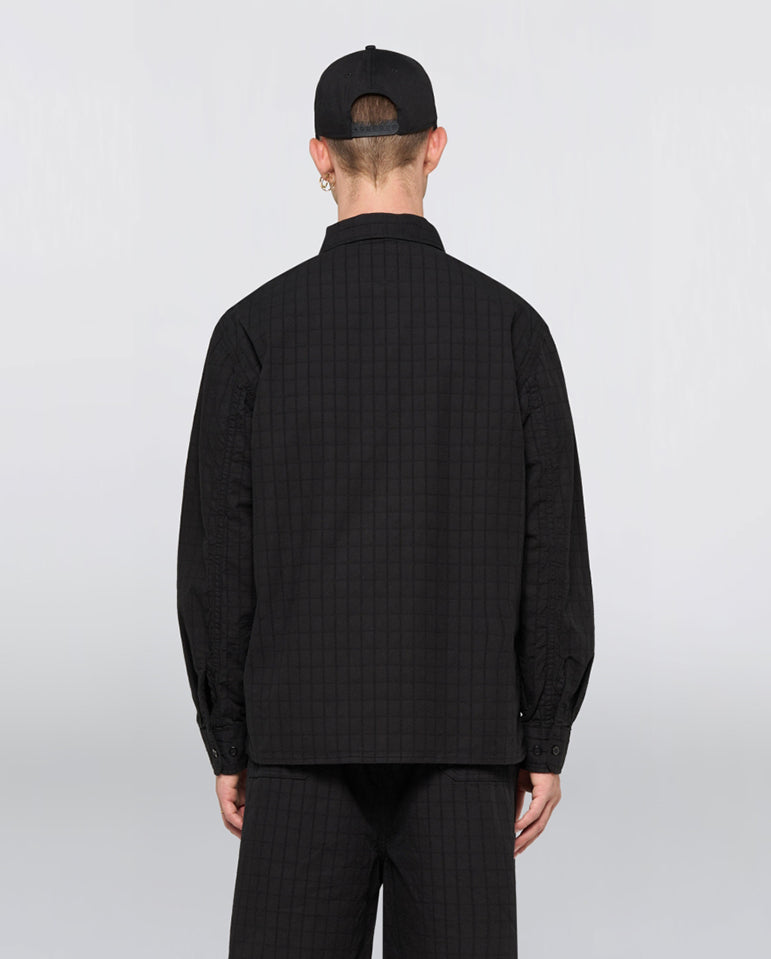 The Sebastian Shirt is cut from a heavyweight cotton fabric with a cool grid pattern top stitch.