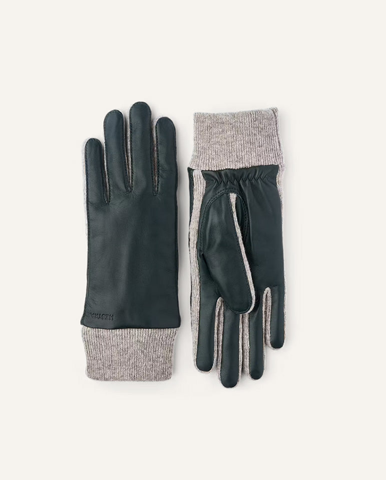 The main material is rib-knitted wool jersey, while the backhand and palm are in Italian lamb nappa, a leather with incredible softness and sheen. It features half piqué seams around the fingers and a ribbed cuff.