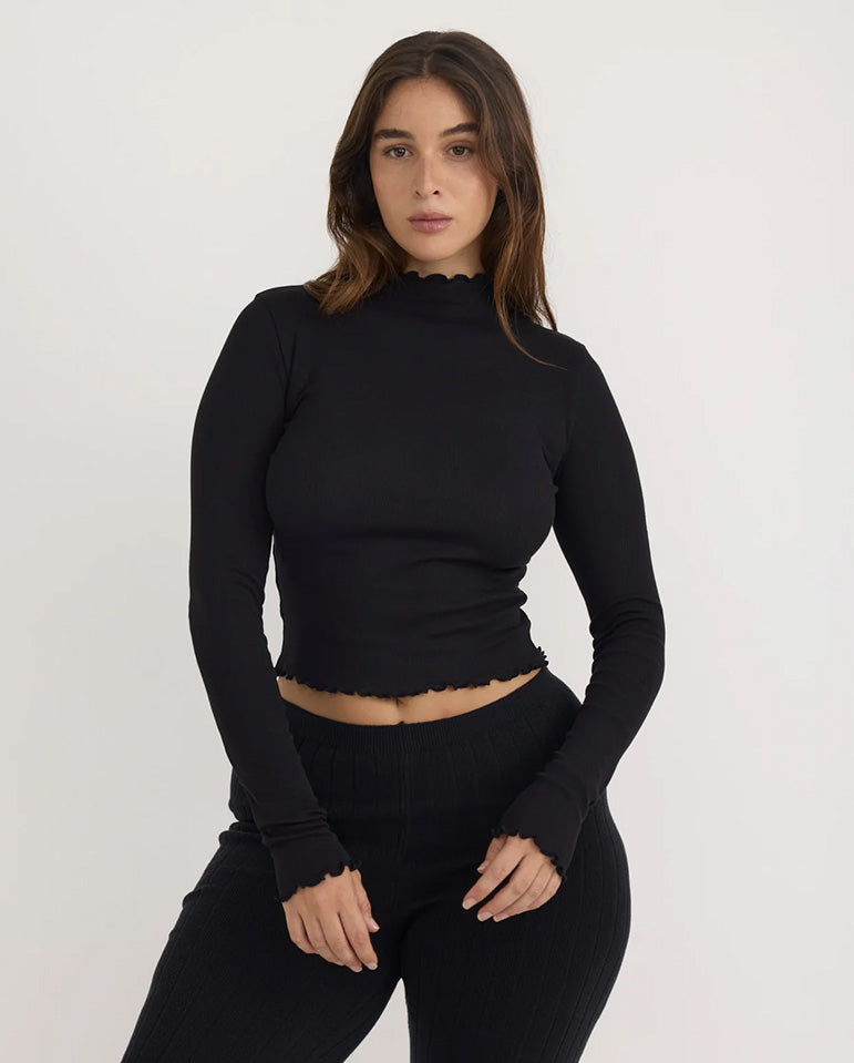 Core Rib Mock Neck Tee - Black