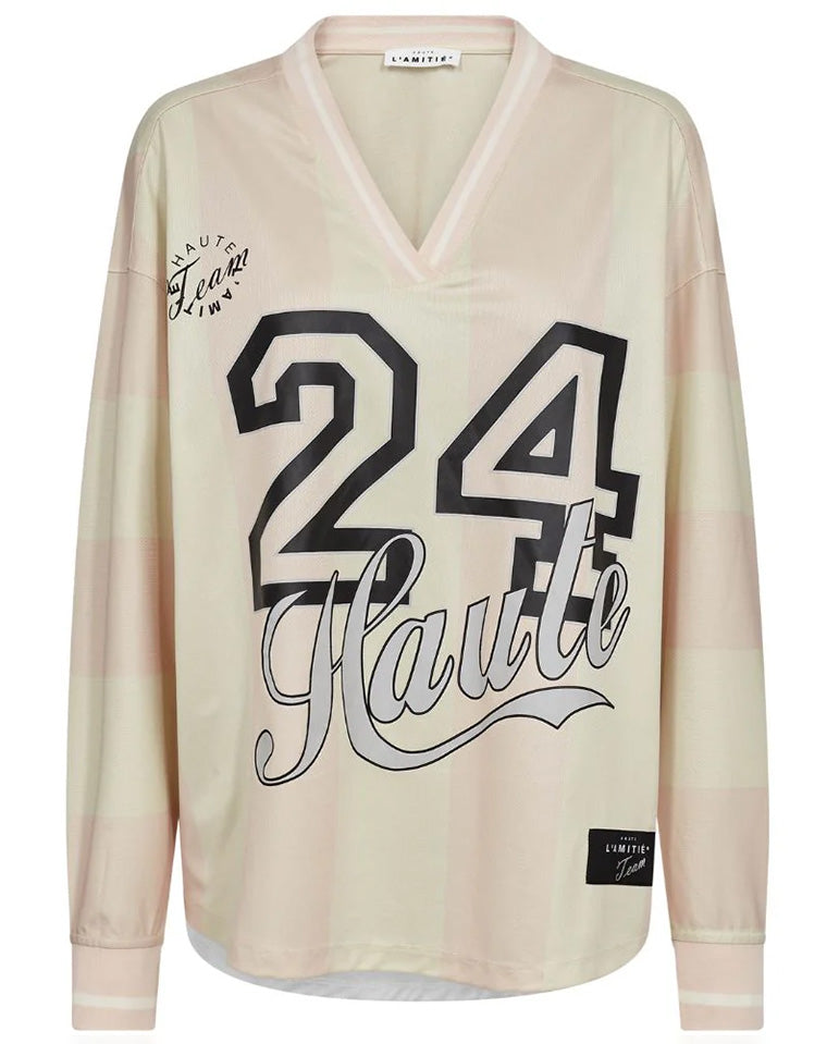 Sports style V-neck T-shirt from Haute L'Amitie. Designed for an oversized, slouchy fit with dropped shoulders and ribbed cuffs.