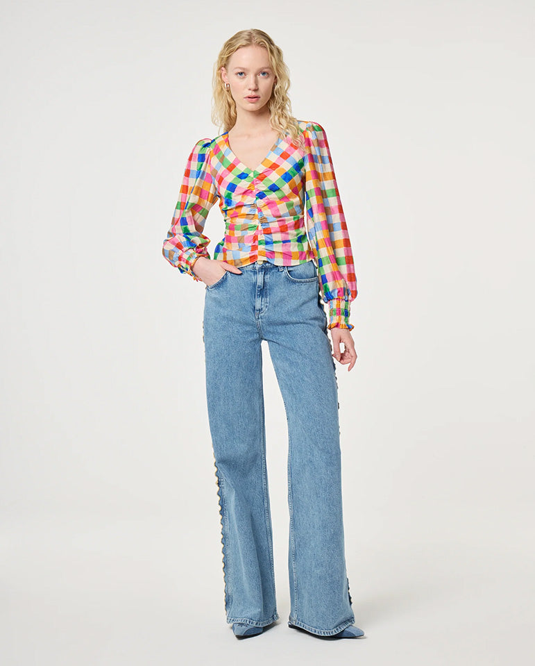 This Fabienne Chapot top features a slim fit throughout with ballooned sleeves. Layer under a blazer or to add a pop of colour to your corporate.