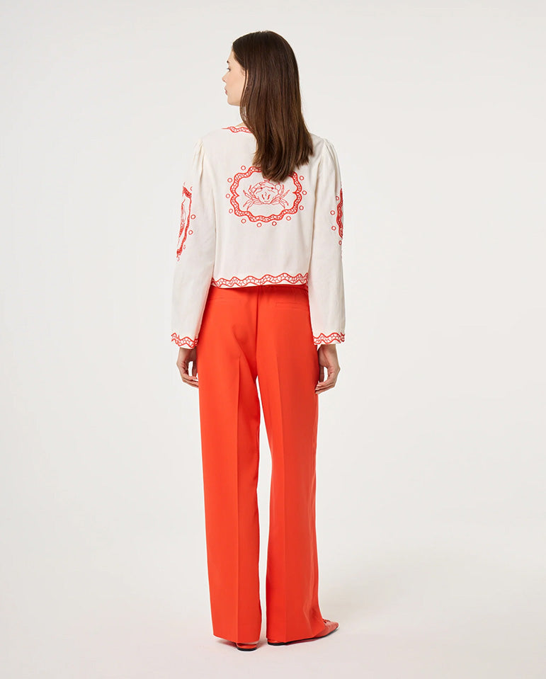 Long sleeved top with embroidery details all over, finished with delicate ribbon style tie front closures.