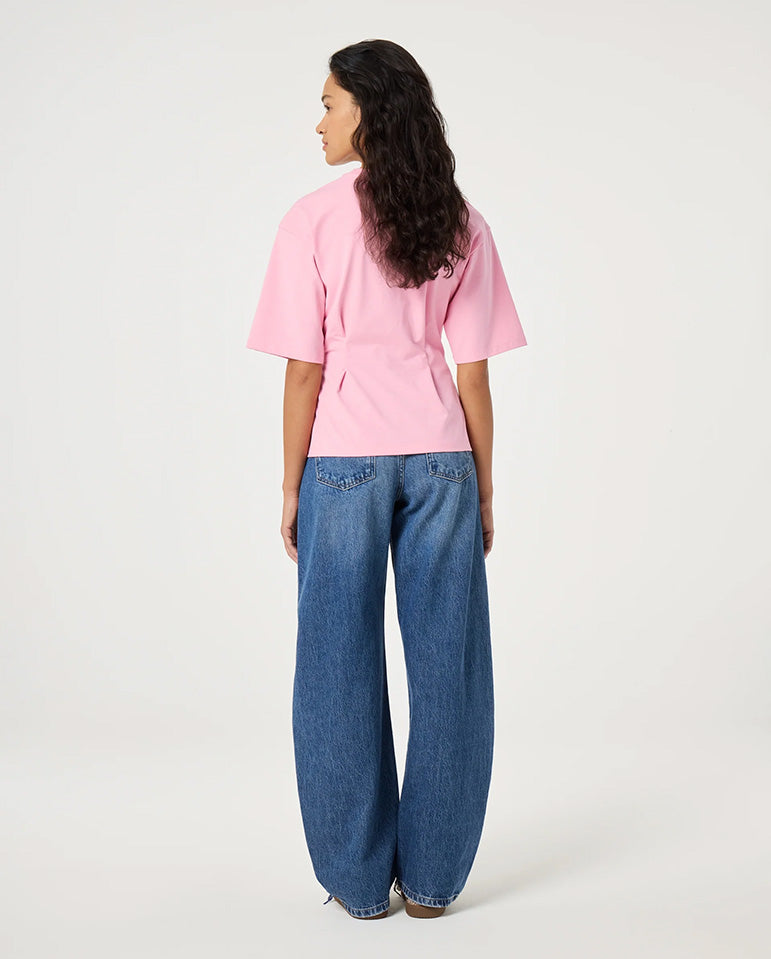 Detailed with ruching at the waist, the Asta tee offers a flattering fit, finished with a self fabric rose brooch.