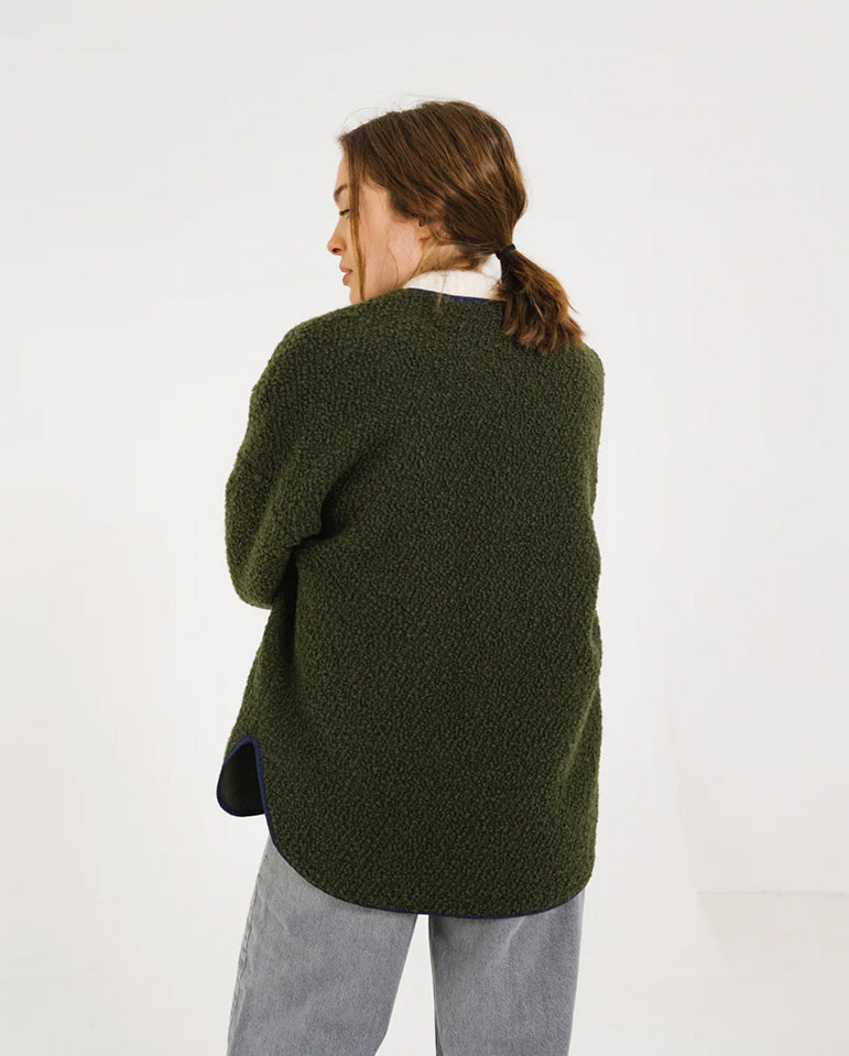 Let bouclé be your best friend as the days grow shorter... The 'Bari' is a mid-length jacket in khaki-coloured bouclé wool, lined front and back with low armholes and two patch pockets on the front.  Made from 95% Virgin Wool,...