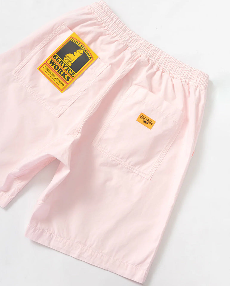 The SW Chef collection takes the traditional style of cheffing trousers and elevates them to a versatile essential... The Ripstop Chef Shorts in Durst Pink have an adjustable waistband with drawstring, fatigue front pockets and rear pockets with a woven label....