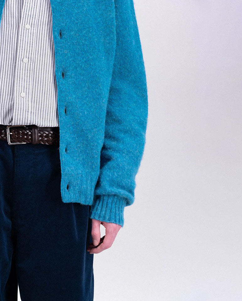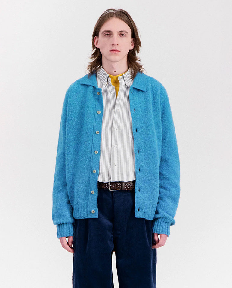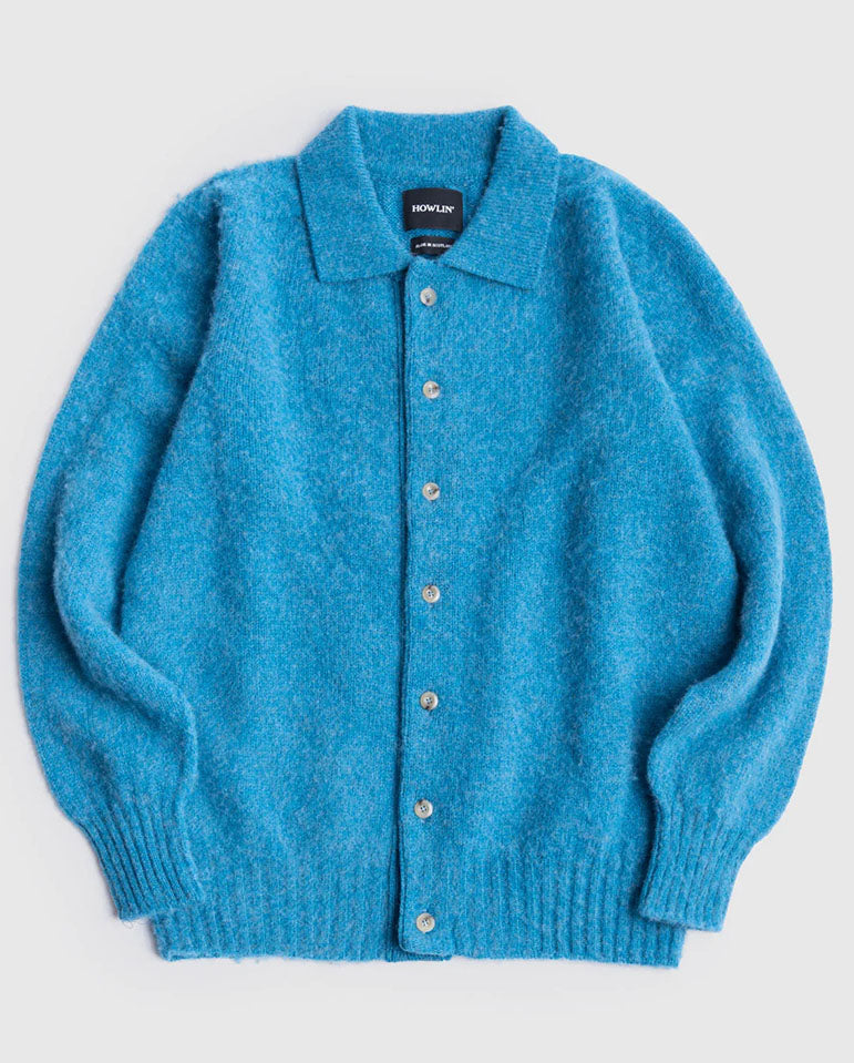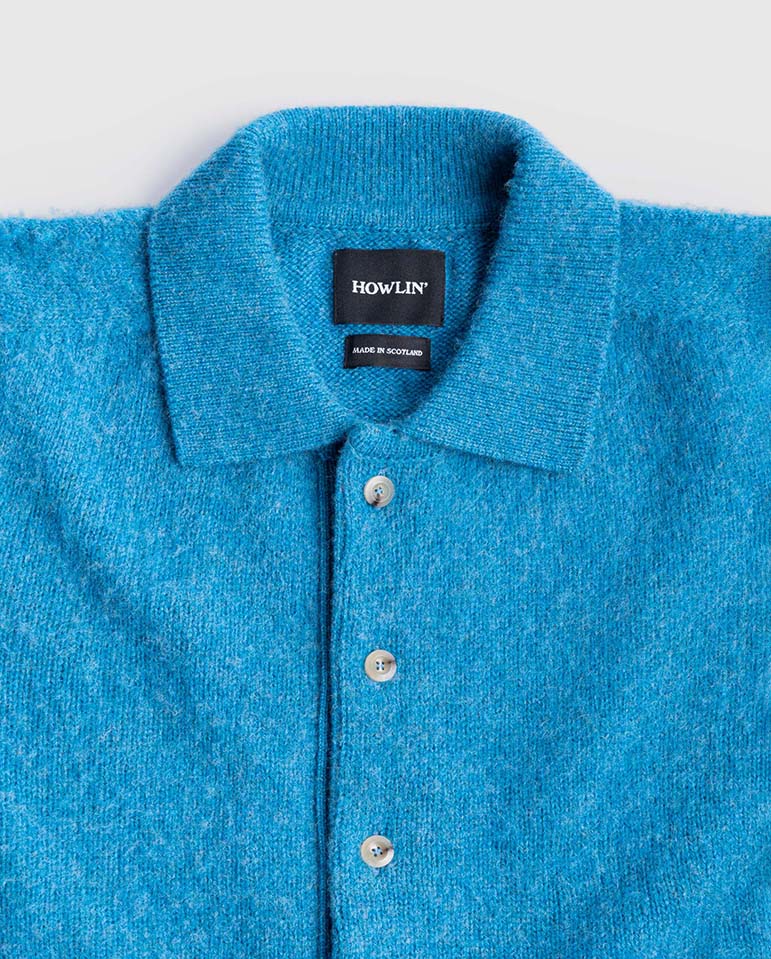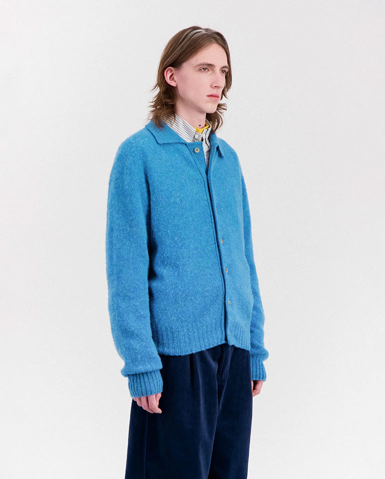 This cardigan-style sweater features a classic collar, ribbed cuffs and hem, and a relaxed silhouette. Shown in bright blue 'Lunar' colourway, so bright skies are always near.