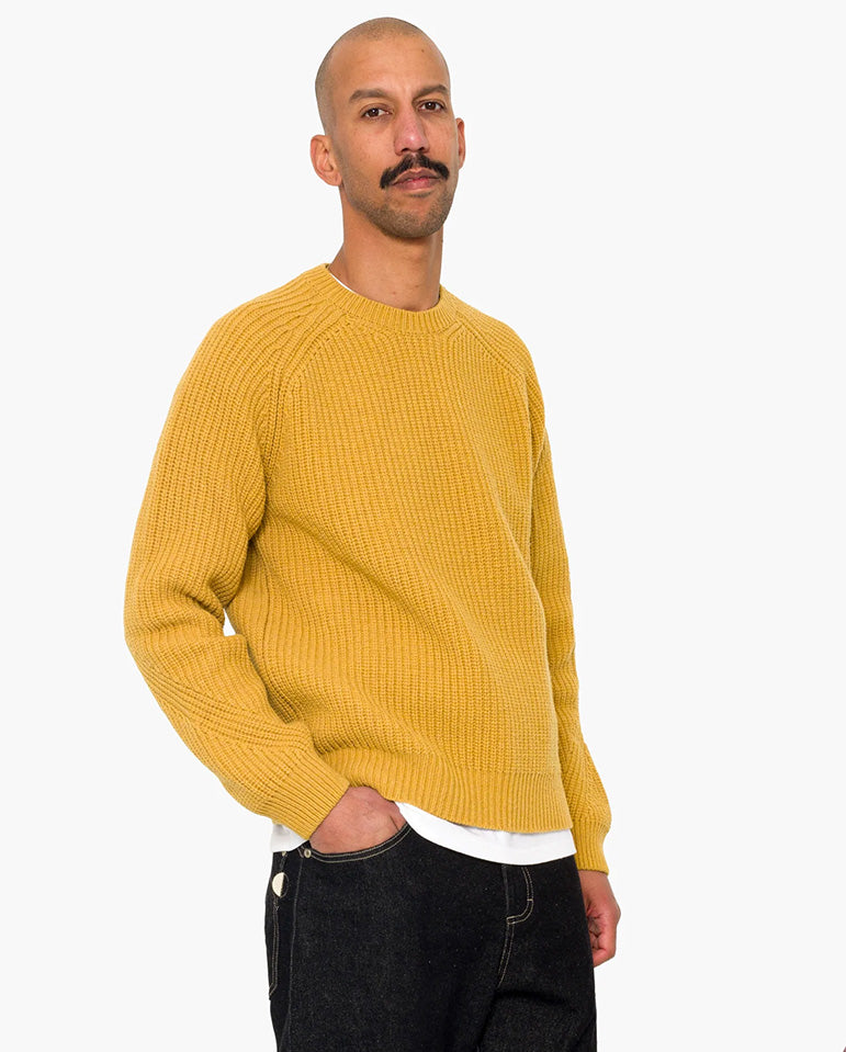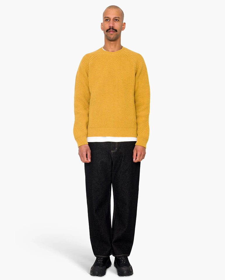 Bring a little sunshine to your winter knits... Mid-weight, loose fit with a set in sleeve made using synthetic wrapped cotton yarns for added strength and textured finish. Features ribbed neckline and cuffs. Made from 80% Cotton, 20% Polyamide. Handwash. Store...