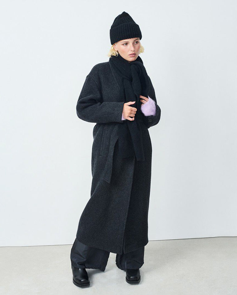 Wrap up and face the cold... Long cosy scarf from American Vintage, woven in a soft alpaca blend. Also available in Red and Grey. Made from 35% acrylic, 31% alpaca, 22% polyamide, 11% wool, 1% elastane.