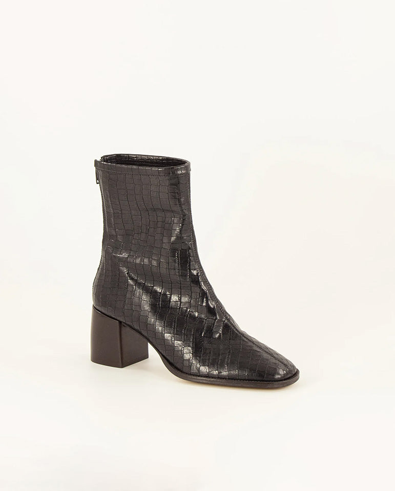 Slip a foot into Sessùn's Gypqueen boot this Autumn... Heeled boots in crocodile-print cow leather, made in Portugal. Finished with a leather insole, outer sole and lining Heel height: 6.5 cm Made from 100% Cow leather. Avoid prolonged contact with...