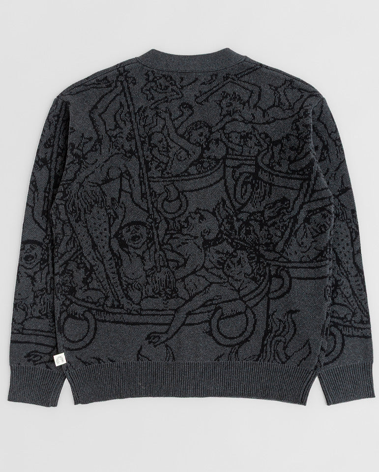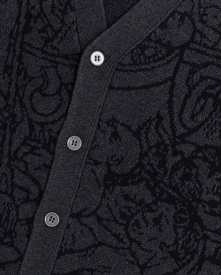No sacrifices here, the Hades cardigan from Heresy delivers... Don't let your style take the hit when you get chilly, try Heresy's Hades Cardi. Jacquard knitted cardigan designed for a relaxed fit with a V neckline, gun metal buttons and Arch...