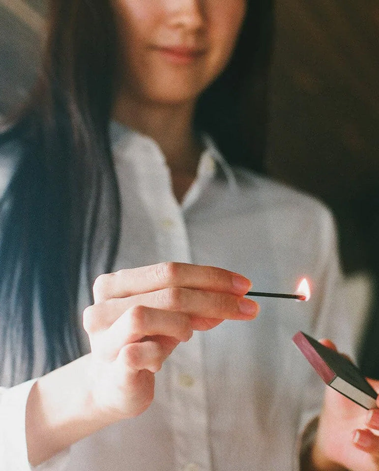 Simply light the match by striking it, lay it on Hibi’s exclusive mat and enjoy the scent for around 10 minutes. The mat is heat-resistant so you can safely leave it on your desk.