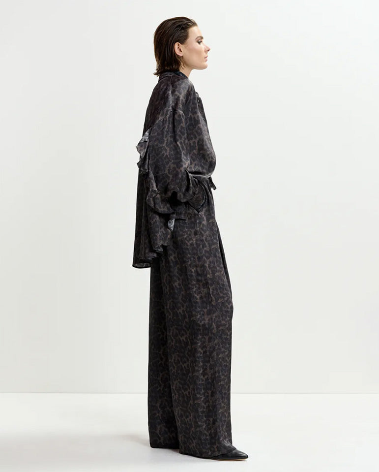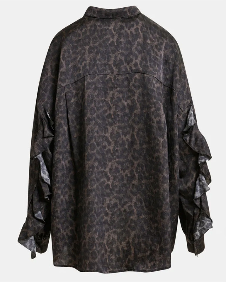 Live in print, it's the Essentiel Antwerp way... Leopard-print shirt designed for an oversized fit with dropped shoulders and statement ruffle detailing along the sleeve seams. This shirt has a classic button down fastening, cut from a lightweight, non-stretchy fabric....