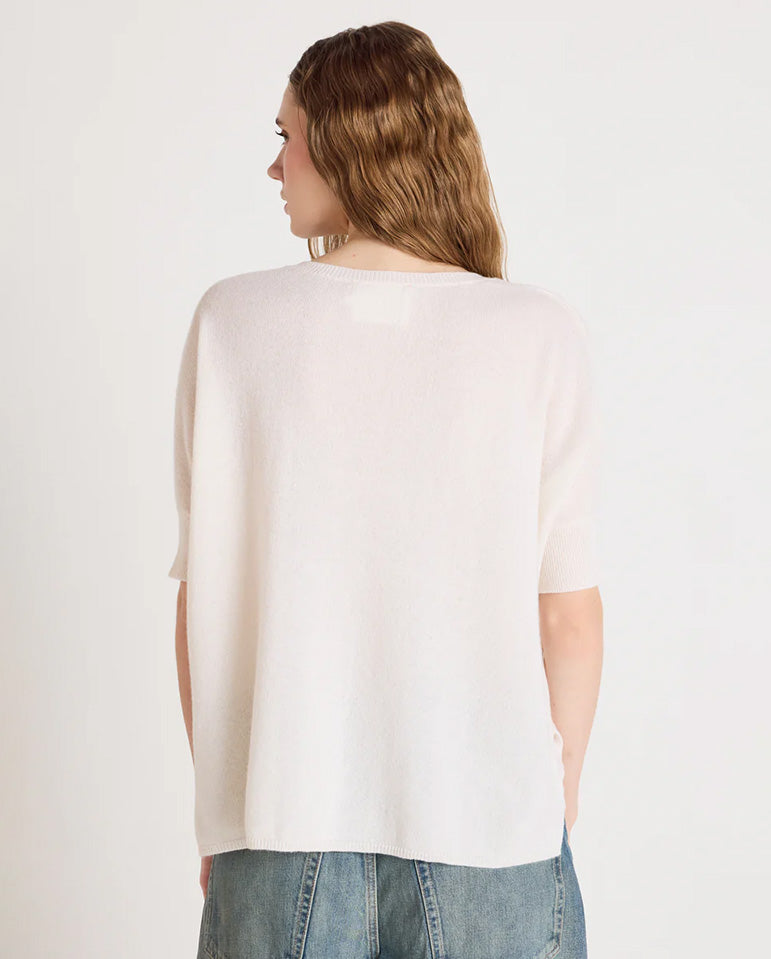 With quality that shines through, Kate's nothing but great: a real chameleon piece that'll stand the test of time. Oversized v-neck jumper with short sleeves, ribbed cuffs, vented sides and an open hem. Unsure about the fit? Absolut Cashmere recommends...