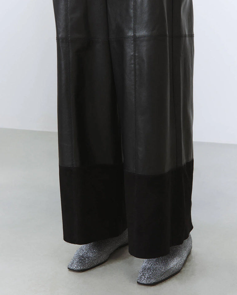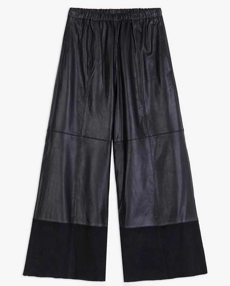 Make your outfits interesting with texture... Genuine leather and suede trousers from quality Italian based brand, Alysi. Features leather and suede panelling and an elasticated waist, designed to graze the ankle. Made from 100% genuine leather trousers. See label for...