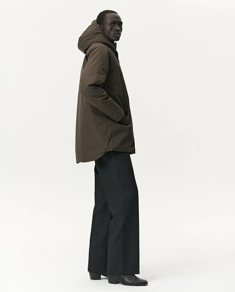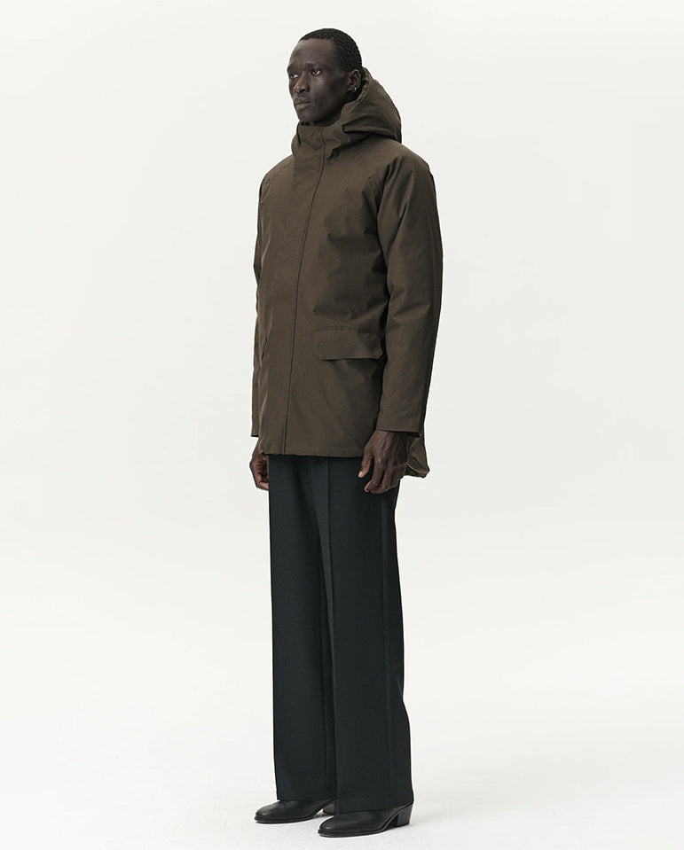 Welter Shelter grace us with the Long Marinero, a mid length parka with a technical look and a sleek design... Two layers of super smooth technical polyester fabric, insulated with recycled polyester create a fully waterproof, windproof, and breathable coat...