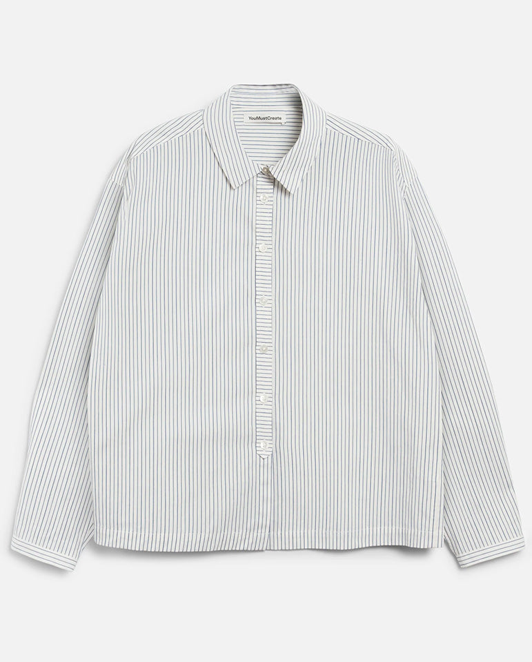 It may have a grandad collar, but the Marianne Shirt is anything but old fashioned... This relaxed fit, long sleeve shirt, is cut from Japanese mill-washed pinstripe cotton with a bias cut front placket and rounded cutaway collar. Finished with...