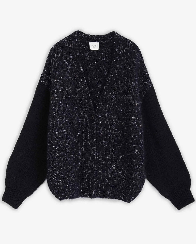 If we ever get lost in a piece of knitwear, let it be this... Mohair blend knit cardigan from quality Italian brand, Alysi. V-neck cardi designed for a loose, soft fit with wide contrasting sleeves, five tone-on-tone button closure and...