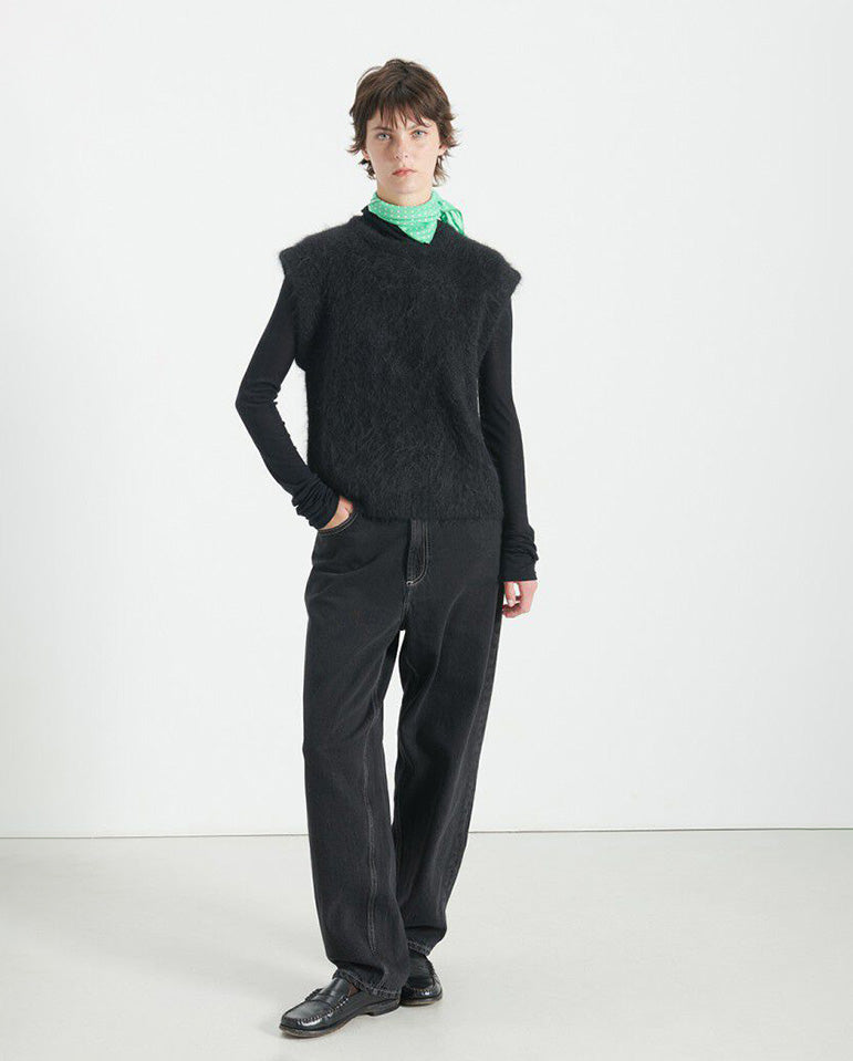 Sleeveless round-neck jumper crafted from a soft alpaca blend. Also available in Royal Blue.