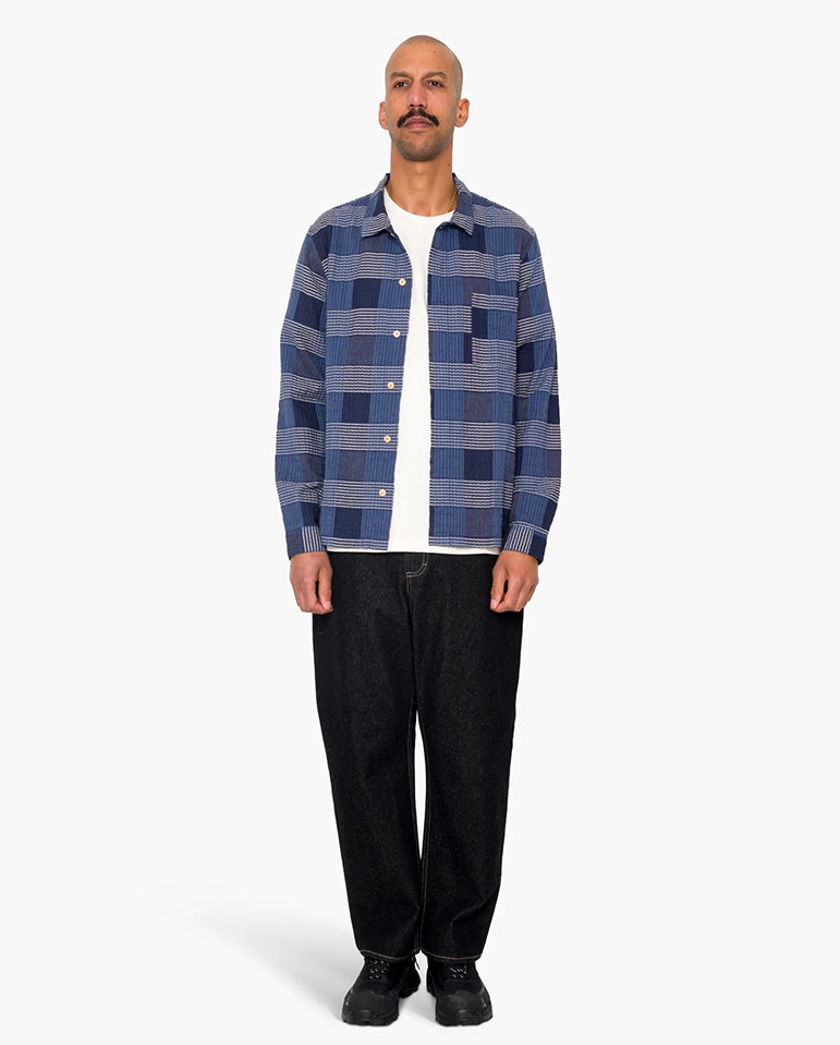 A Folk favourite, around again for another season... Folk's Patch Shirt has a slightly loose cut to give a relaxed fit and feel. The top button is exposed and the rest concealed behind the central front placket. The Blue Multi-check...