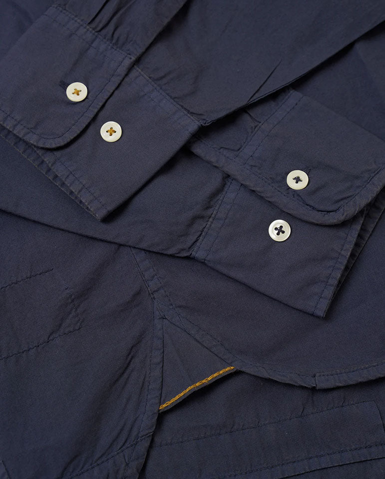 A classic shaped shirt with a subtle contemporary patchwork twist... A reliable staple: the button-down shirt, to be worn unbuttoned for those lazy days. Designed for a relaxed fit with a single asymmetric pocket and back yoke with box pleat....