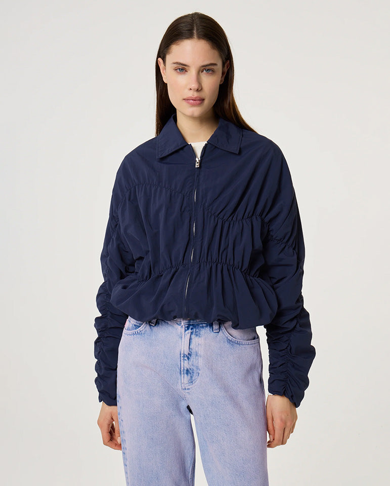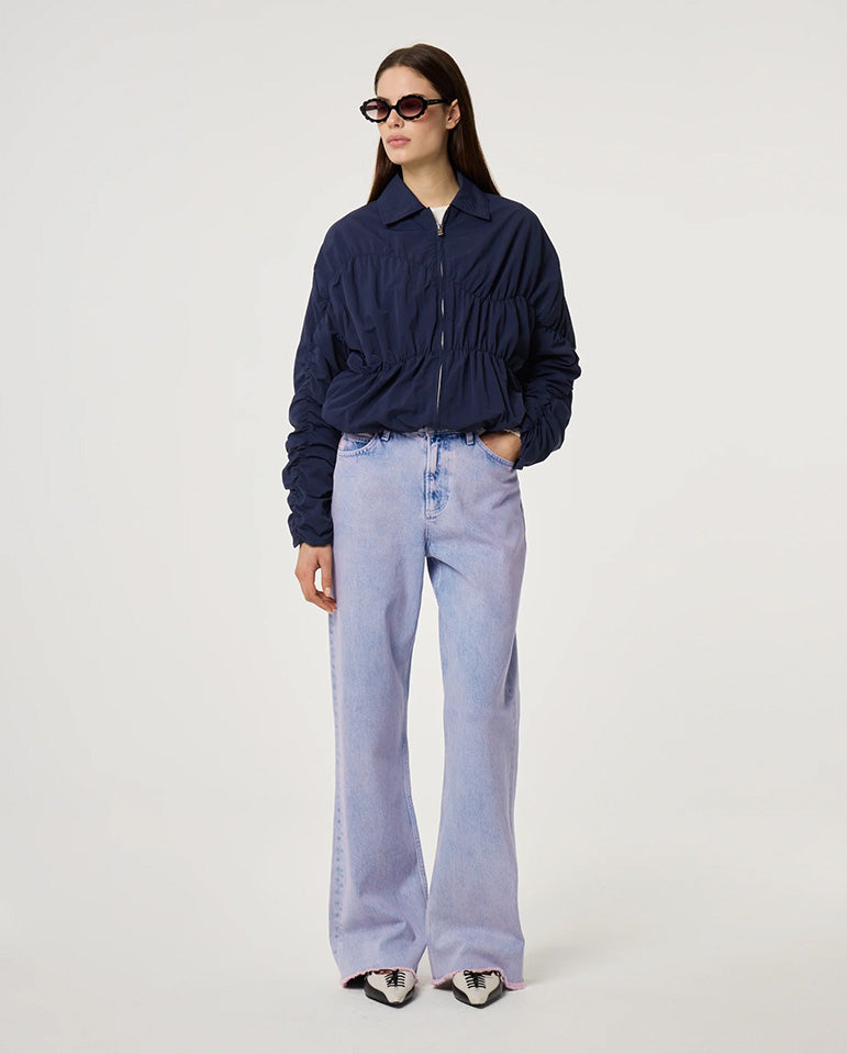 Slightly cropped and lightweight, the Pillow Jacket is perfect for spring layering... Deep blue jacket designed for a loose fit, this Fabienne Chapot jacket offers effortless comfort and a relaxed silhouette. Finished with a classic collar and zip up front. ...