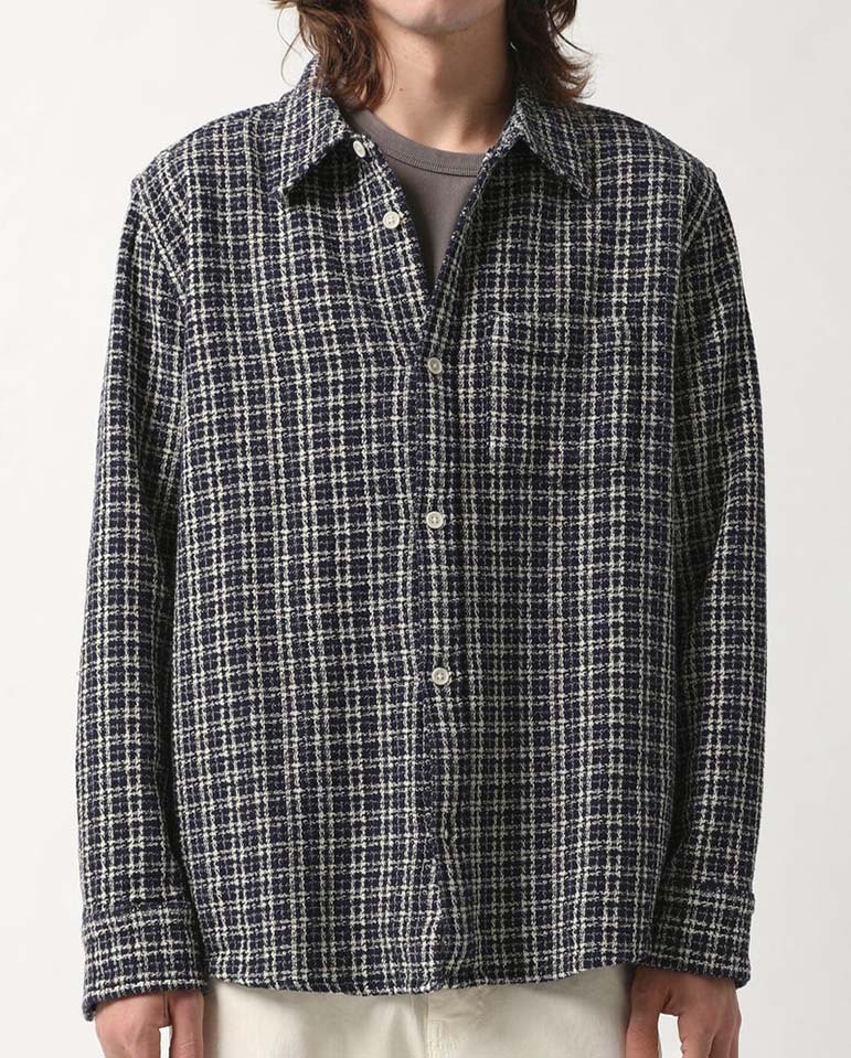 Dress it down with a T-shirt underneath or button up when the day turns to night... The Reverse Tweed Snow Check shirt is a made in a heavyweight, but super soft, reverse tweed cotton. It features a blue check print and...