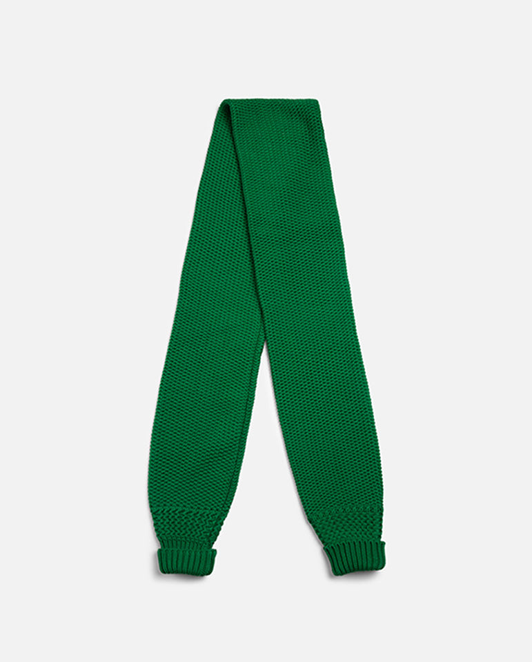 Whether you need sleeves, or a scarf, YMC has you covered... Long knitted scarf crafted in a chunky rickrack knit from cotton yarn. Designed with a sleeve-like tubular design and rib knit cuff with racking detail. Also available in Black. ...