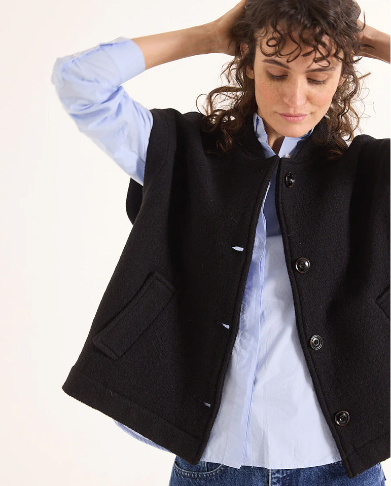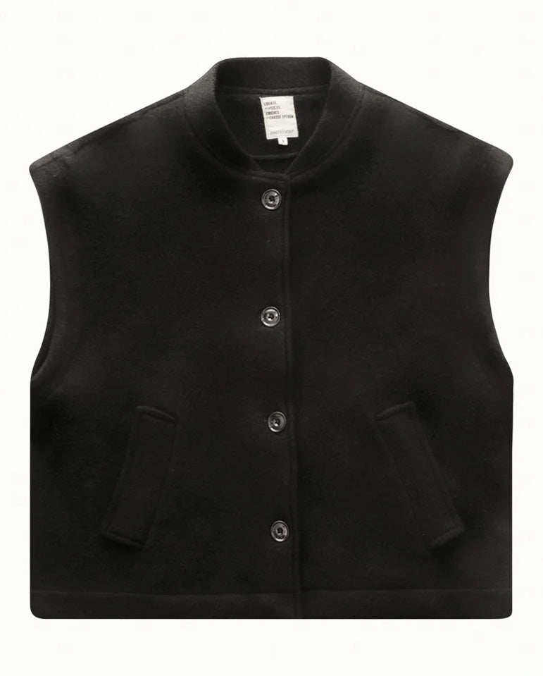 Layer under a jacket, or over a shirt, either way the Sonny Gilet will keep you toasty... Sleeveless, unlined round jacket designed for an oversized fit. Woven in Italy from boiled virgin wool, it features pleats in the back, large...
