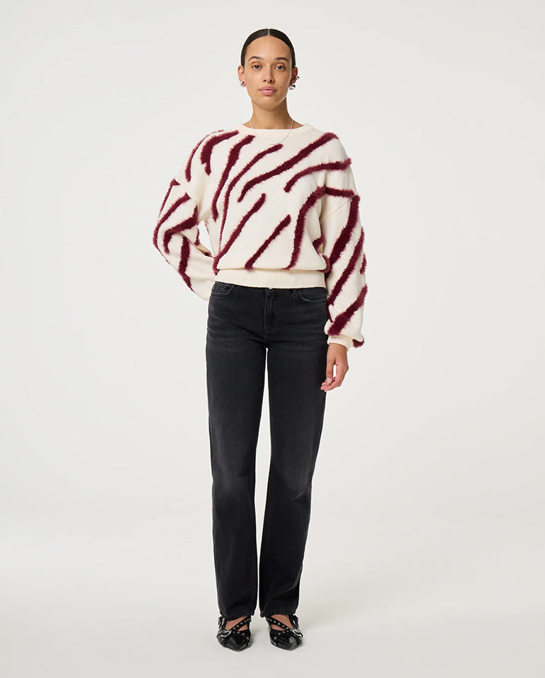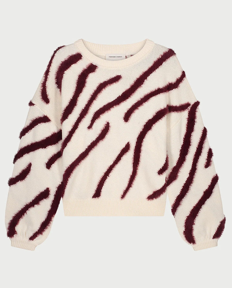 Whether you're in for the night, or out, keep it cosy with Fabienne Chapot's AW25 collection of jumpers... FC pullover in this season's 'cosy white', featuring a bold burgundy pattern set against a soft, textured knit. Made from 60% Cotton...